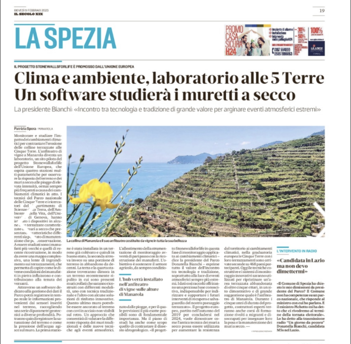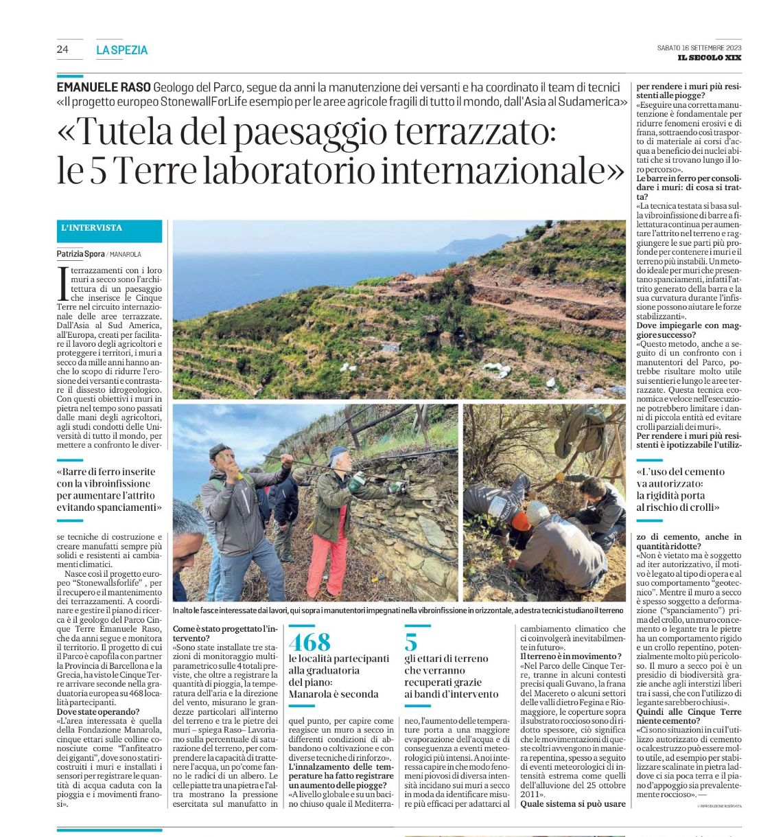 | Il Secolo XIX | 08/02/2023 | Cinque Terre Muri a secco sorvegliati speciali | link |