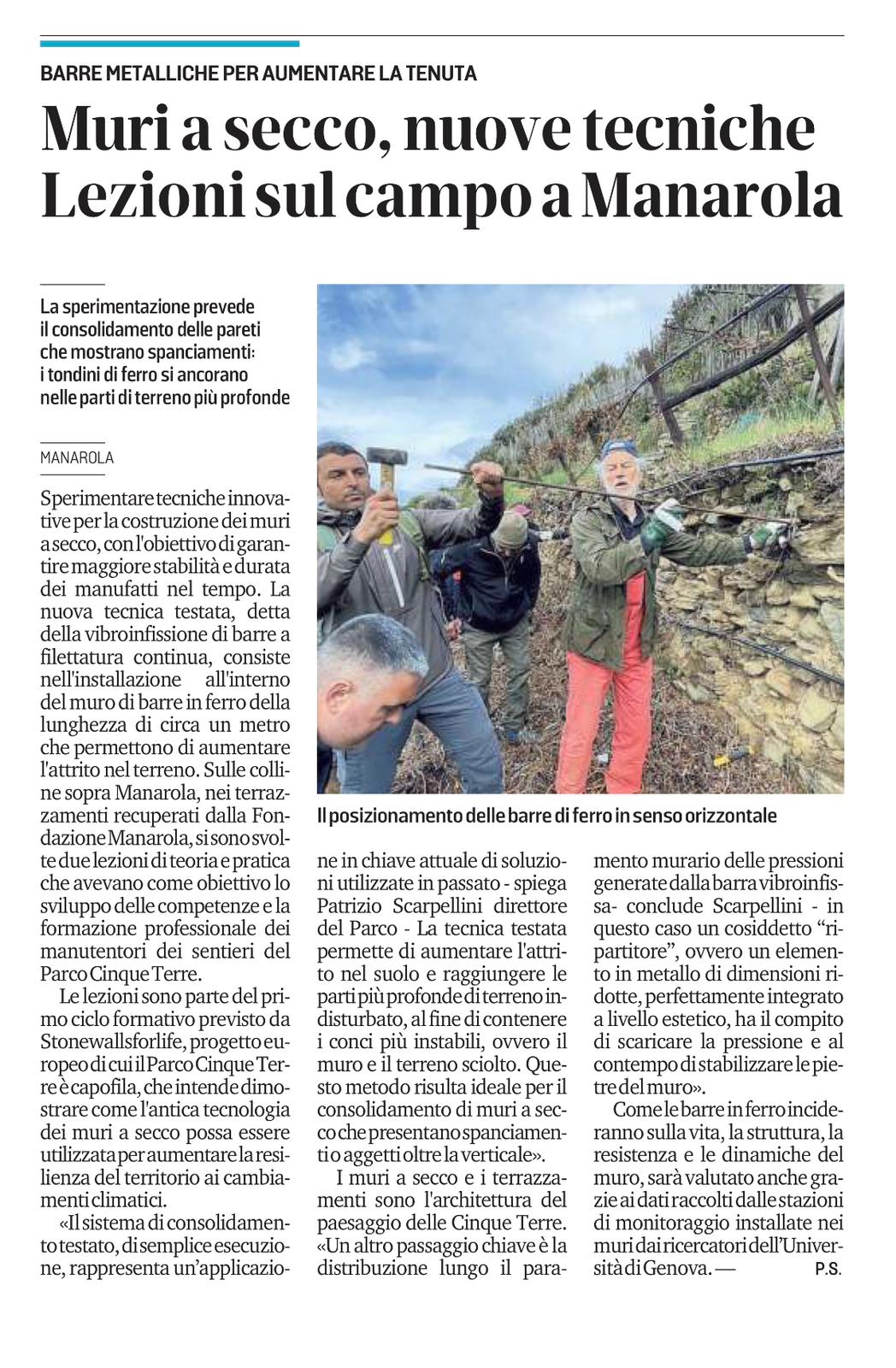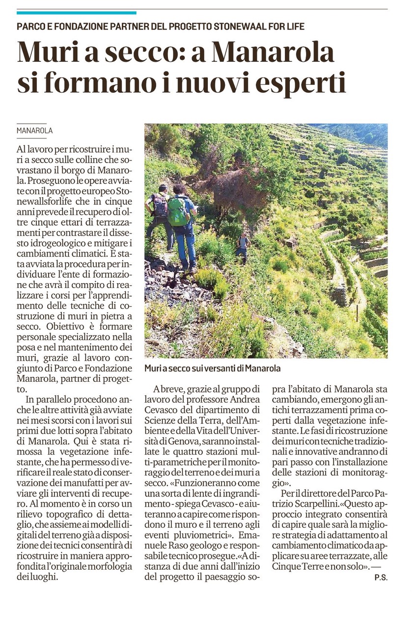 | Il Secolo XIX ed. La Spezia | 15/07/2022 | Muri a secco a Manarola si formano nuovi esperti | download |
