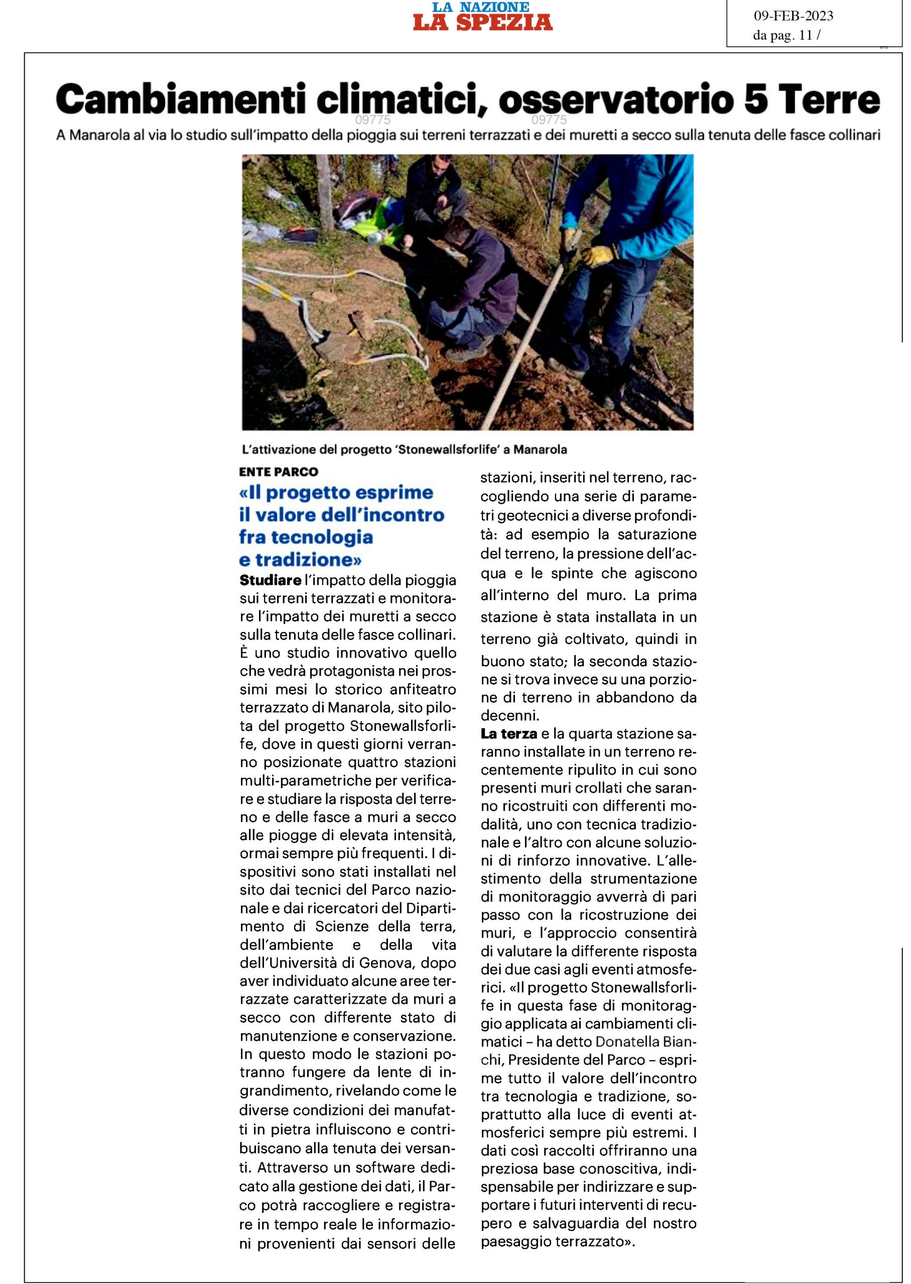 | Citta della Spezia | 08/02/2023 | Alle Cinque Terre arrivano i sensori per misurare l’efficacia dei muri a secco | link |