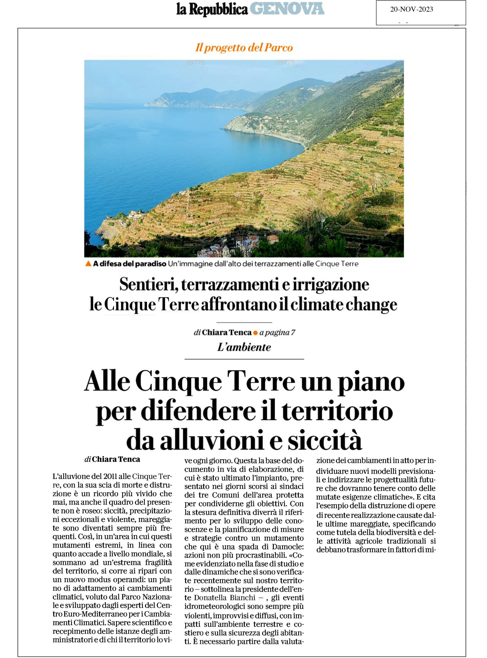 | La Repubblica | 20/11/2023 | Alle Cinque Terre un piano per difendere il territorio da alluvioni e siccità | download |