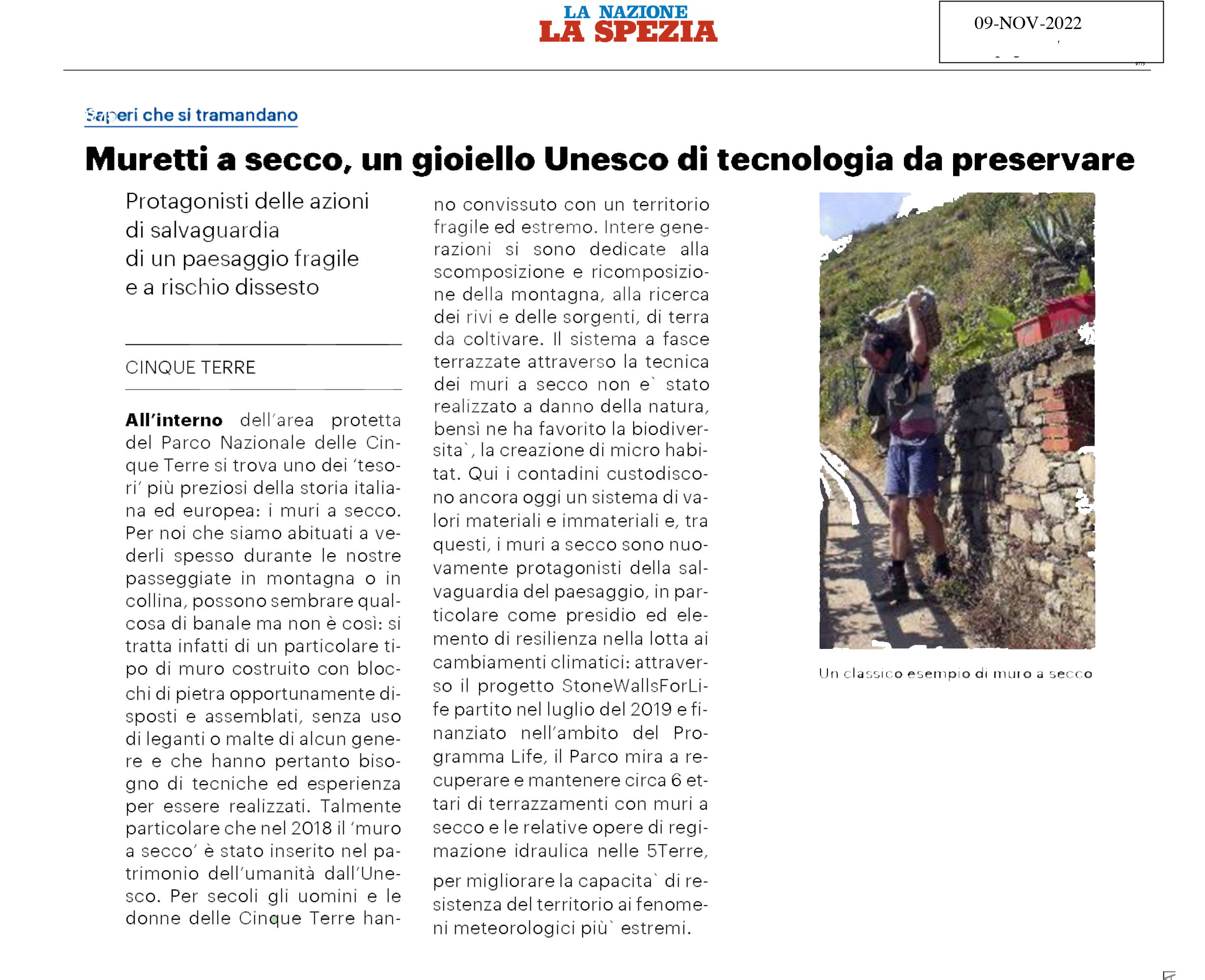 | La Nazione | 09/09/2022 | Muretti a secco, gioiello Unesco di tecnologia da preservare | download |