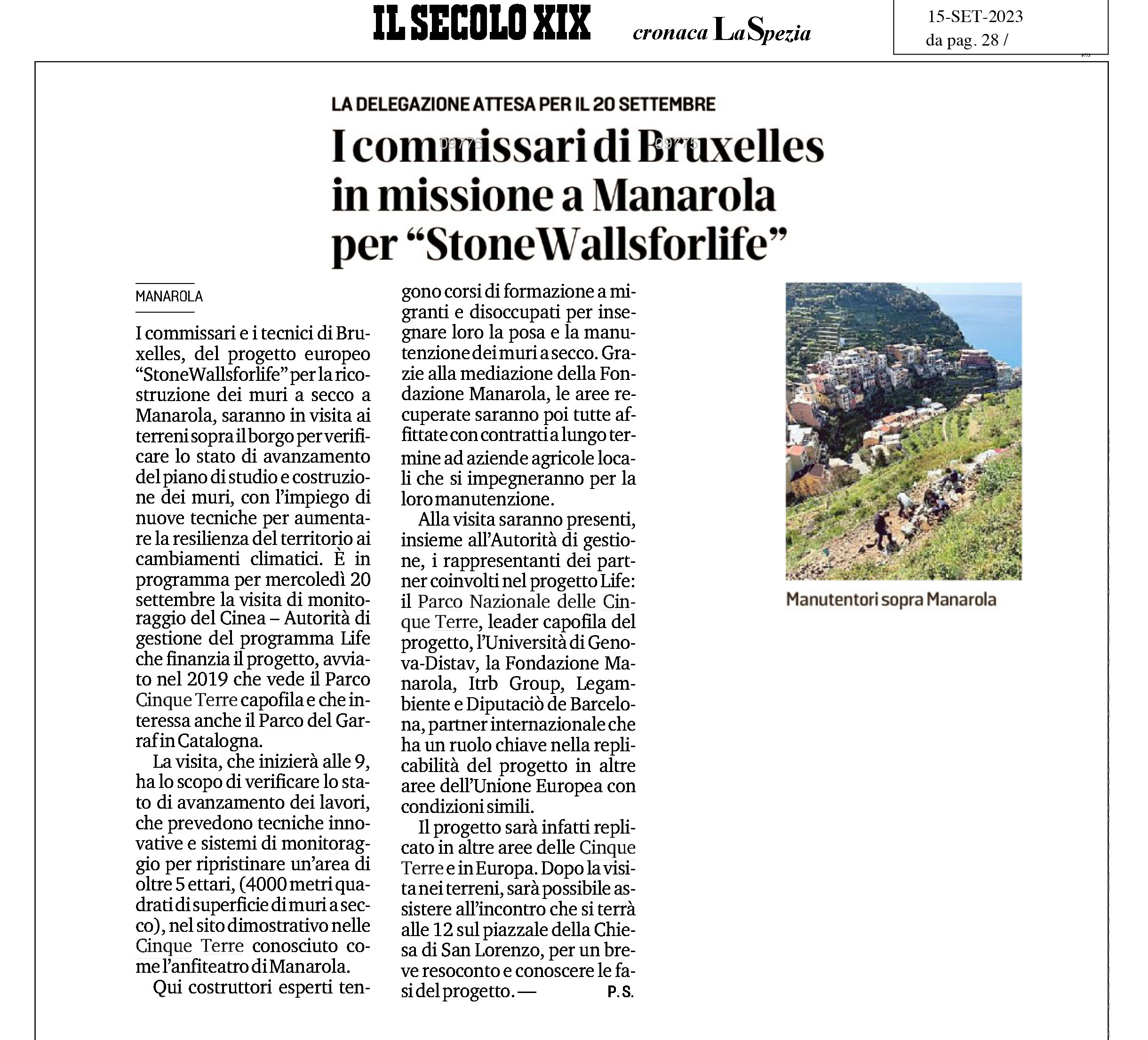 | Il Secolo XIX | 15/09/2023 | I commissari di Bruxelles in missione a Manarola per Stonewalls4life | download |