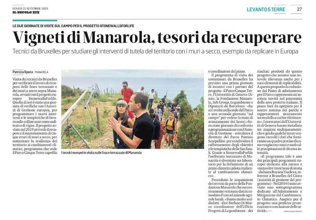 | Il Secolo XIX | 20/09/2023 | Cinque Terre sopralluogo dei tecnici da Bruxelles al sito Stonewalls4life | link |