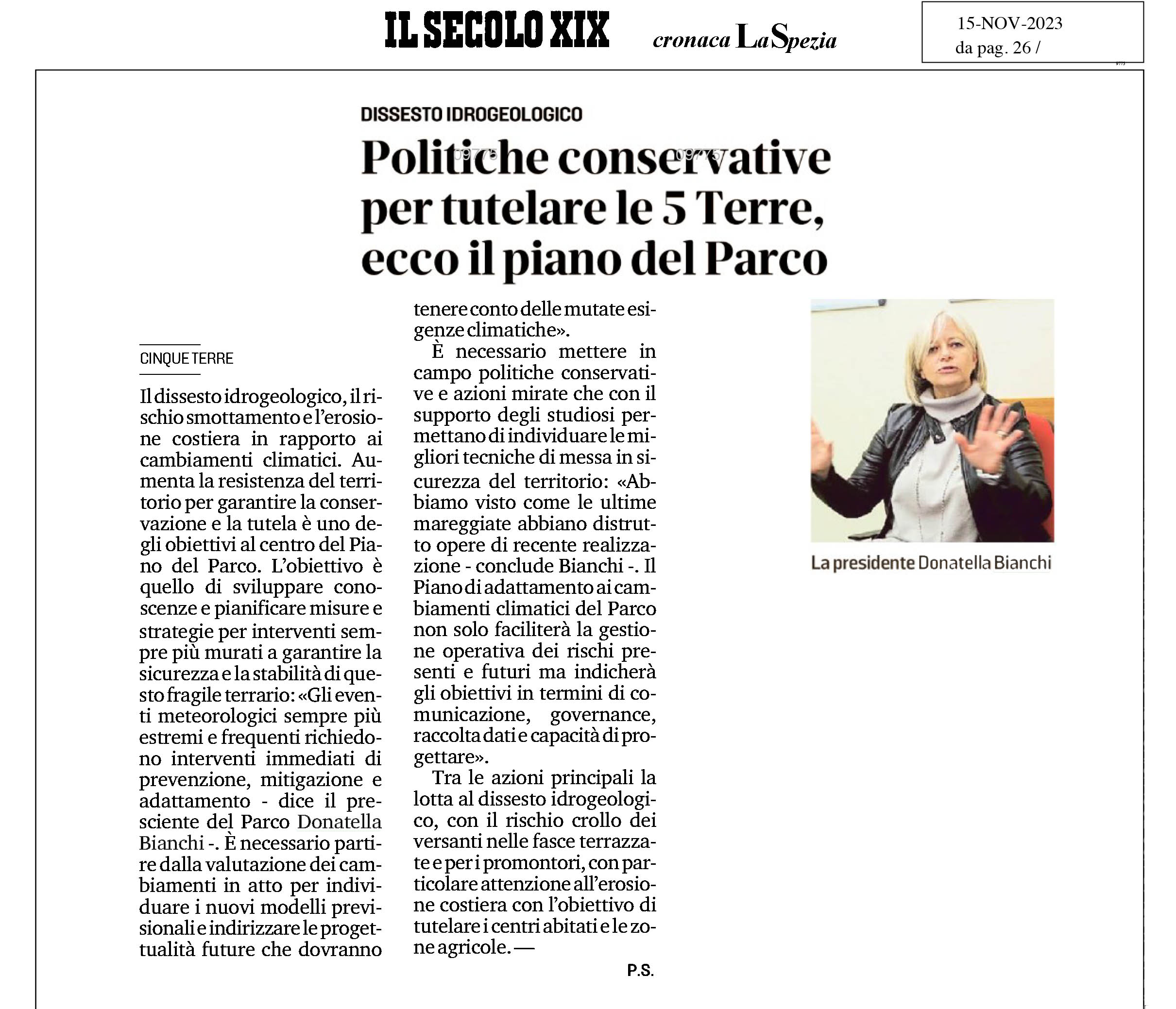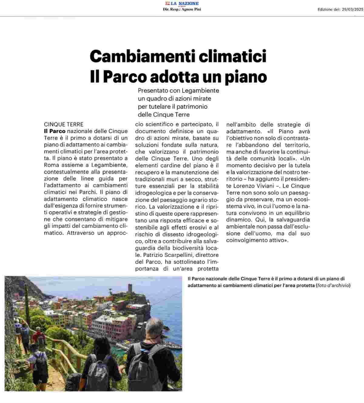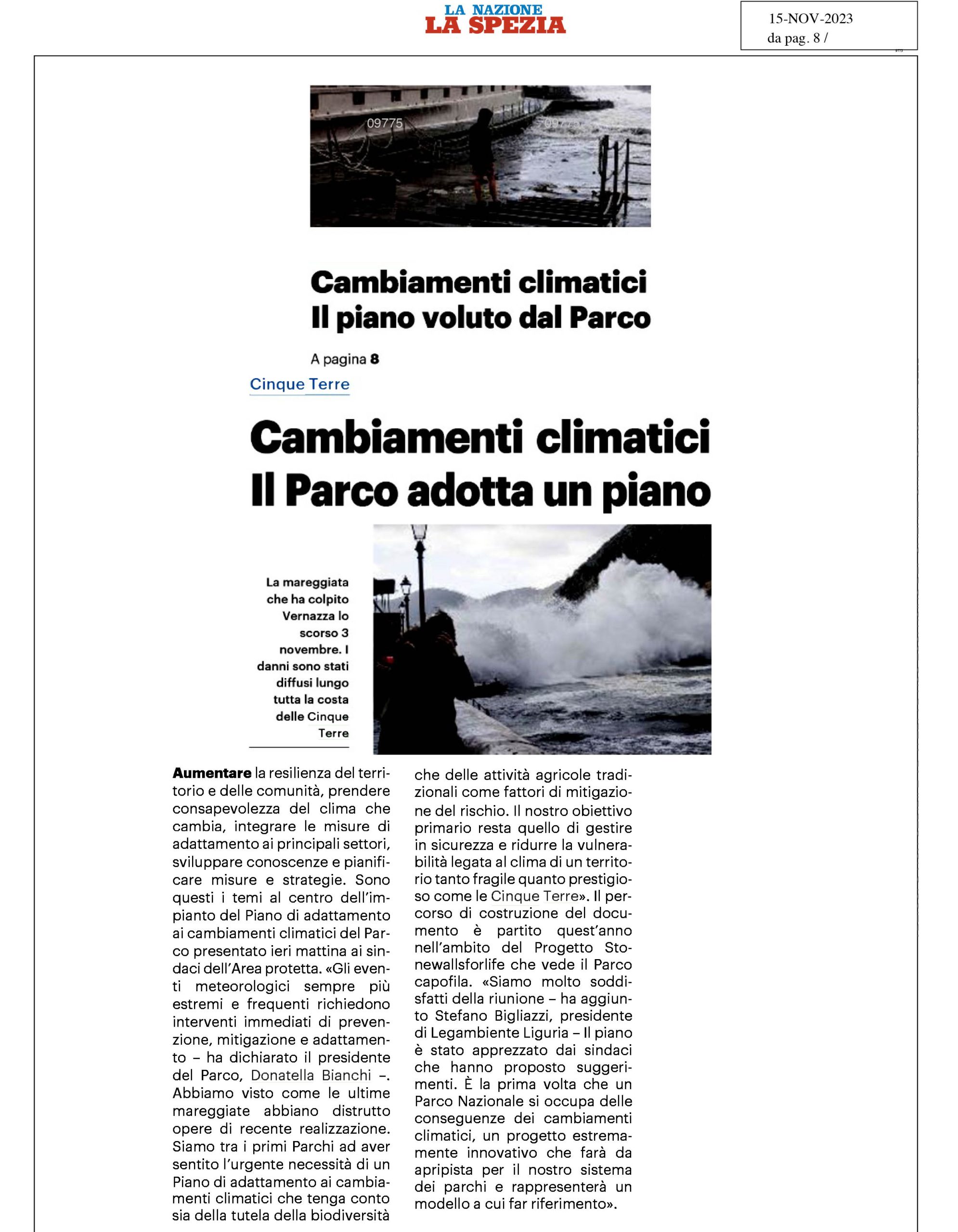 | Ansa | 14/11/2023 | Parco delle Cinque Terre: Un Piano per l’emergenza climatica | link |