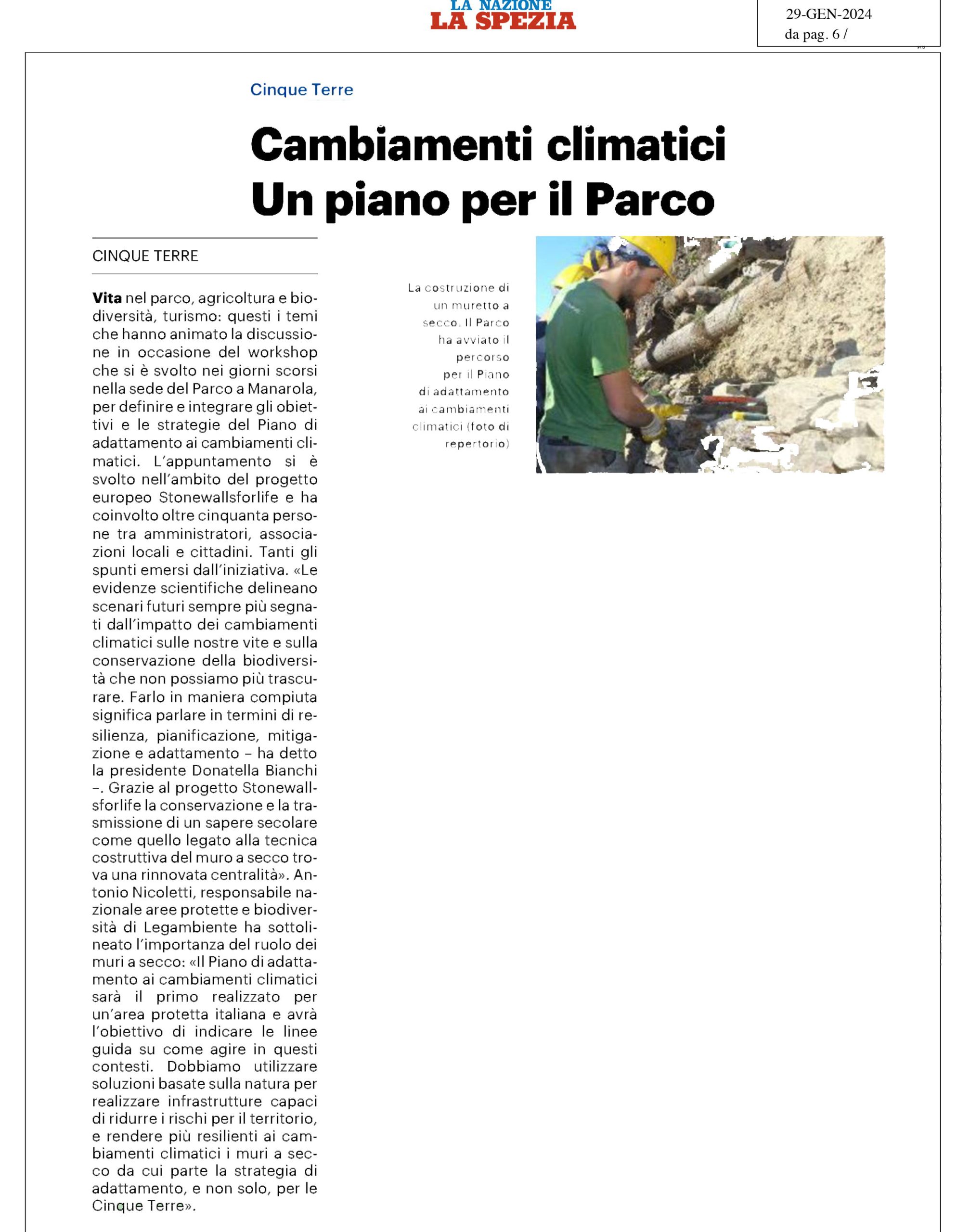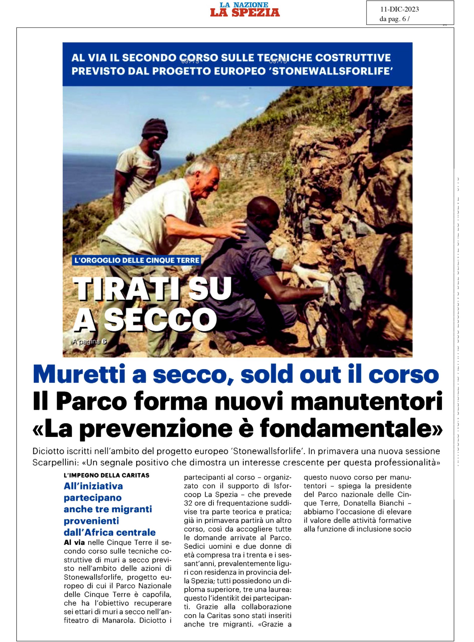 | La Nazione LA SPEZIA | 11/12/2023 | Muretti a secco, sold out il corso. Il Parco forma nuovi manutentori “La prevenzione è fondamentale” | download |