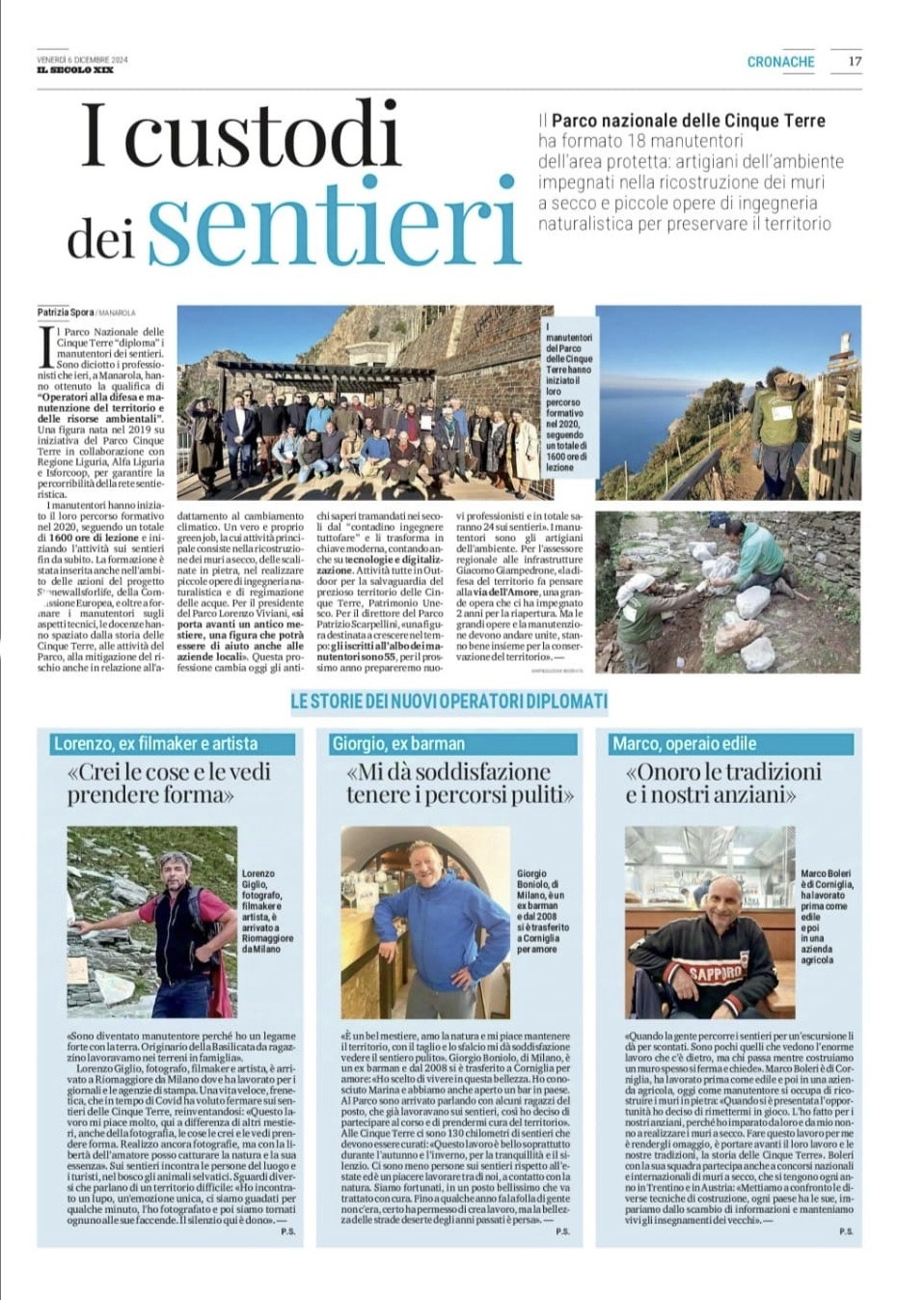 | Il Secolo XIX | 09/12/2024 | I custodi dei sentieri | download |