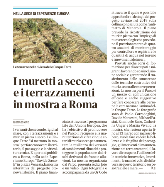 | Il Secolo XIX | 24/02/2024 | Muretti a secco in mostra a Roma | download |
